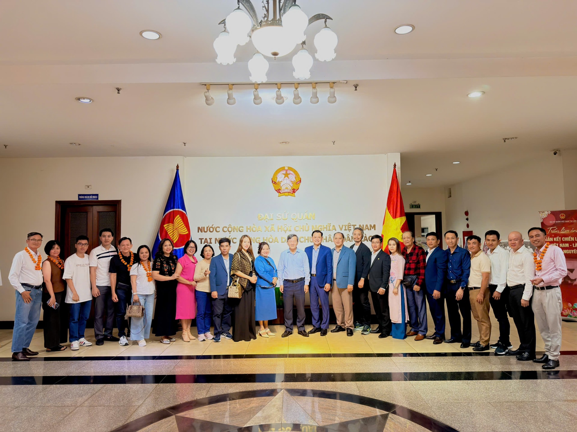 Ngay sau khi đến Lào vào ngày 09/4/2026, Đoàn công tác đã đến thăm Đại sứ quán Việt Nam tại Lào trong khuôn khổ chuyến công tác, khảo sát thị trường và xúc tiến hợp tác.